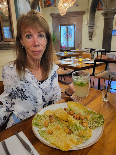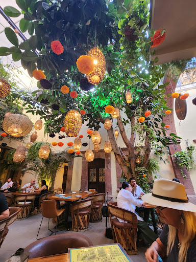 Read moreOkay I live in San Miguel now so this is an honest review. The menu is very diverse. The sea bass was off the charts. My wife had the crabby Burger which was a crab and grilled shrimp pressed patty. Both are fantastic. She's not a big cheese eater so had to take the cheese off of the burger. They probably have 30 to 40 different types of tequila and mezcals to choose from for their margaritas and cocktails. The ambiance is six stars if I could give it. They have a cute bar when you first walk in but we went to the restaurant in the back. The location couldn't be better as it's right near the church and the cost was about 10 to $15 a person US. You definitely want to put this on your list of places to eat at when you are in San Miguel. We were there early but they have live music on Fridays and Saturdays and I've heard that the music is fantastic. One of the owners is an artist and painted all the beautiful artwork inside the place. Make sure you definitely put this on your list of places to visit and even though there's not a lot of tables they don't rush you to get out and You can hang out for hours. Restaurants are super clean and this staff is super helpful along with menus in English...