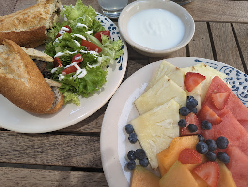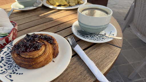 Read moreGreat place for breakfast. It has indoor and outdoor sitting. Outside, all the tables have shade, so you are not getting blasted by the sun. Also, it's a good place to sit if you like to watch people walk by. They have a nice selection of French pastries and deserts along with fresh baked bread. We both had the chilaquiles, and they were crunchy and great tasting, served with eggs, beans, and some fresh fruit. All to wash it down with a huge cup of coffee. Highly recommend as their menu has lots of options that all...