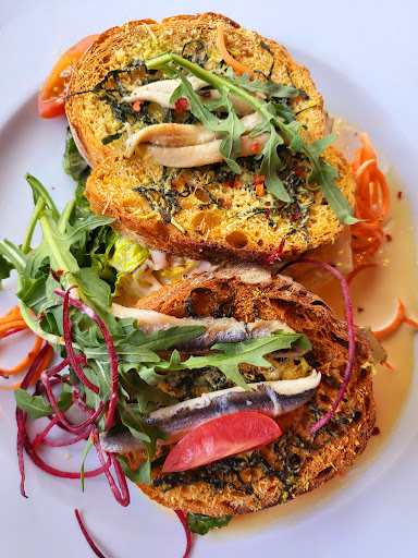 The ham was fine. Shaved like prosciutto as it should be. The cheese was a huge thick chunk, and the crostini was this thick slice of toast - almost an inch thick. They had put something under the cheese (never identified) that made it soggy. I don’t mean not toasted/crisp… I mean wet. I picked the ham off and a bit of the cheese and that was all I could stomach.