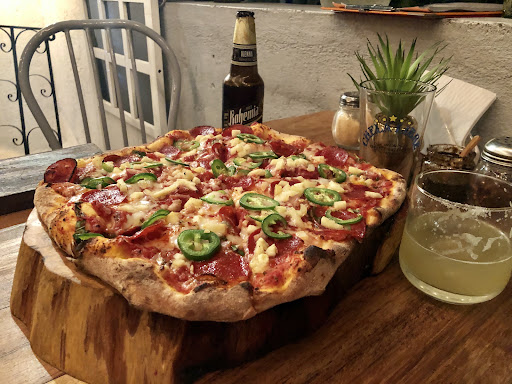 If you are a fan of wood-fired, artisan pizza, this is definitely the spot in SMA. One of only two pizza restaurants I’ll eat at in town, and they are different enough styles I think they compliment each other rather than compete. A nice crust with some crunch, fresh meats and vegetables, and wonderful flavor combos. They have artisan and national beers, good mixed drinks, and a friendly staff. Somewhat small dining area, we ate above the kitchen on a covered terrace. Bonus: we were entertained by the beautiful macaw on the adjacent rooftop :). Seating is limited; I think 4 or 5 tables on the terrace, and it is up a skinny and steep little spiral staircase. I found it cool, but it is something to consider if any in your party may have mobility issues. We’ve ordered for delivery as well, and I’d say the pizza was 4 star delivered, but 5-star dining in… There is a gluten free option for the crust, I believe it is cauliflower based dough; my wife thinks it...