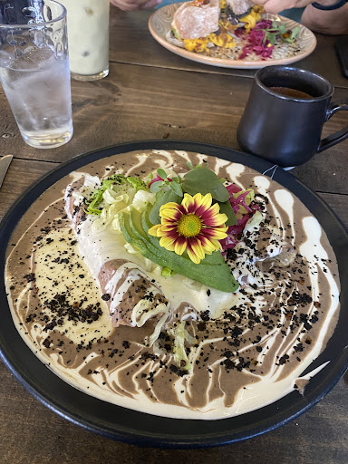 My friend ordered enfrijoladas. Again, the flavor was missing, the tortillas felt old and even though it looked cute for an IG picture it didn't really tasted like anything. The frijoles... yikes, even La Costena has more flavour in one can than whatever it was that we ate.