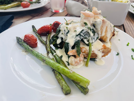 Read moreWe were so happy to have discovered The Bistro when we arrived back in town after a few years apart! What a breath of fresh air! Gilles immediately greeted us + was very welcoming with his recommendations immediately making us feel at home. We also noticed him inviting all the pups from the neighborhood to join on his patio providing water + dog treats! We also saw him walking a customer’s dog while we ate! What an animal lover! The iced coffee was delicious + we went with the salmon + I think our family did not not talk for a few minutes as we were completely entrenched with the deliciousness + presentation of the salmon dinner dish. It was PHENOMENAL. I believe it to be my favorite salmon dish ever (+ I eat a lot of salmon). Gilles wife, Alessandra, if often there + is just as lovely! She’s a sweetheart + the atmosphere reminds me of a Parisian cafe with the mirrors, seating + ambiance! Thank you Gilles + Alessandra for such a lovely experience!...