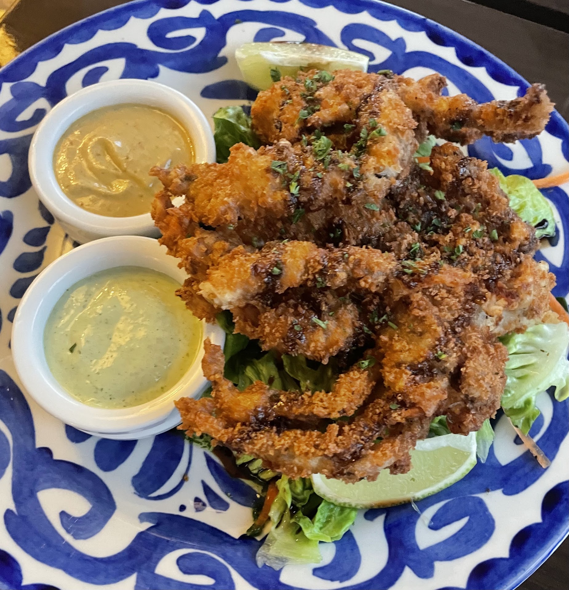 For the appetizer, I went with the Crispy Shrimp Pops—a dish that alone is worth the visit. The perfectly crisp shrimp, paired with the bright and refreshing Mango pico, delicate julienne apples, and a touch of creamy feta crumble, was an explosion of textures and flavors.
