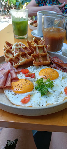 After a full morning of scuba diving, I caught up with my gf here who was having brunch. It’s a tucked away quaint little boutique cafe in the Northern side of the downtown. Easy to spot as it stands out from its crisp white exterior and light blue trim. I’m told it’s the best coffee on the island and my caffeine fix was certainly satisfied. It has a nice garden courtyard with a nice aesthetic. Food and dish presentation contributes to how delicious everything looks. I ordered the espresso waffle and snuck a few bites of chilaquiles off my partner’s plate. The waffle was a treat and the sugar fix I needed after diving. Definitely worth a visit to try when spending time on the island. Nice place to hang out! I made a quick video review and posted to my social medias (inst, yt, tik). Just search @...