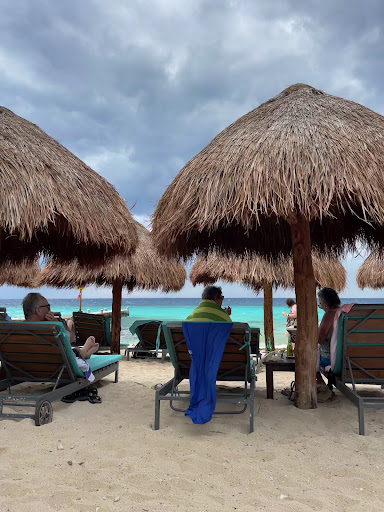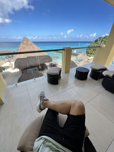 They require you to pay an entrance fee to get to the club. It is not very nice, just a porch next to a rocky beach. I was told the hotel beach chairs were not for us. Kind of lame but whatever I love the ocean so I was digging it. I got my bill and did a double take. Ordered two cocktails, one plate of tacos for a total of $610 pesos. I got my bill and it was for $610, no credit. Also the waiter asked for a tip before he ran my card, kind of awkward.