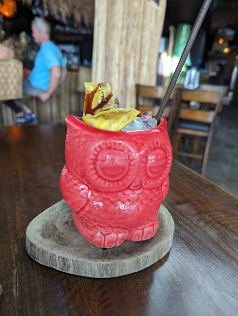 Must say the atmosphere is pretty awesome. Tiki vibes was in Cozumel with my daughter. Stopped here to try it out. The drinks were amazing 10/10. Ordered the blue cheese burger and my daughter ordered Angus beef burger. The only downfall is I did ask that the burger be cooked medium well and although the first bite was amazing the flavors were there. I have to say when I looked inside my burger to take the second bite I realized the meat was completely raw. I guess to some people that's okay but for me it kind of turned me away. I had asked for med well but got rare .I asked her to completely cook it again so they sent it back and it can't still came back a little wrong so wasn't able to finish it but I was full off the appetizer in the drinks. A little mishap but overall I could see where the food is. Amazing. Presentation was beautiful but if you ask for a burger please remember just tell them well. Well done cuz you will get cold uncooked...