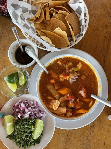 Went here for my post Ironman 70.3 race meal and left with full, happy bellies! We tried the "minerva" ceviche which was bomb, fried octopus and raw shrimp in a spicy sauce. I ordered the pezcazon filet, which was served on top of some pan fried veggies and mango, alongside rice and corn. My partner ordered fajitas, which was a mix of shrimp and fish with bell peppers and onions. We ended up getting so full from the chips, salsas, and ceviche we took the leftovers of fajitas and fish home. Bought some local, handmade tortillas and made a second meal the next evening. Gave the service a 4 only because it took quite a while for us to get our food, might be because they were busy with some post race groups, but out...