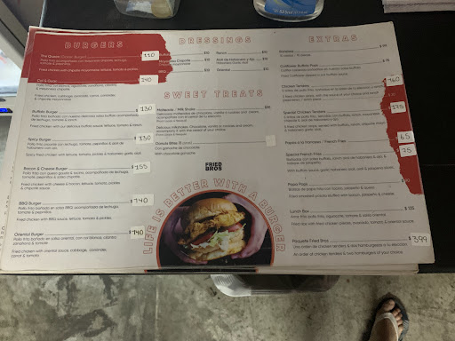 Read moreThis place is excellent. But very confusing. Called fried bros so I’m thinking fried chicken. Then slogan is best burger in Cozumel. So I’m thinking hamburgers. Turns out they sell fried chicken sandwiches. A little off the beaten path but the sandwiches were outstanding. At least as good as popeyes sandwiches. Reasonable priced too. I order la reina and my girl order Buffalo. Both were awesome. They come with a little bit of fries too....