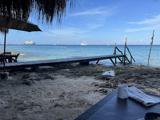 What a beautiful setting just steps from the turquois sea. We were welcomed with a smile by Luciano and he was always there in a flash if we needed anything. $2 Tecate Lights, $2 grilled garlic shrimp tacos (absolutely perfect!) and complimentary chips and salsa. There's snorkeling right in front but we didn't try that yet. The people I asked said there was lots of fish to see. We are here for a month in Cozumel and we are so happy we found this little gem within a short walk of our condo. This will be our home bar while we are here because it totally fits out vibe. Not too busy, great prices, jaw dropping view, great food and wonderful service. We are heading back there after working from "home" today to snorkel and eat. I may even try the night snorkeling tonight. So happy to have found this place! Give them a...