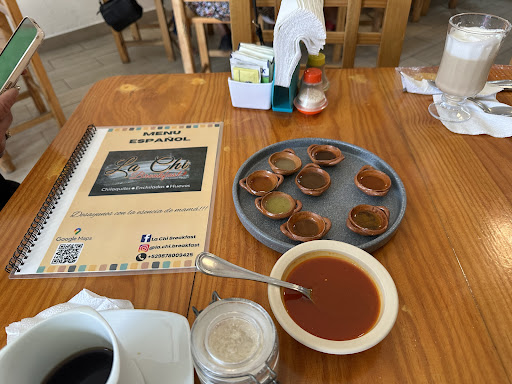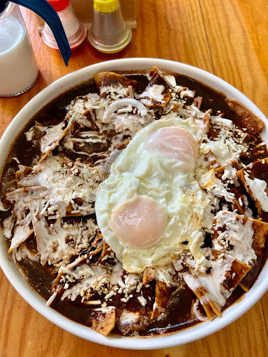 Read moreGreat prices and portions, fantastic flavor and service. We were looking for great chilaquiles after having a horrible experience at a place at the Mercado municipal. We went on the morning of Thursday, October 31st. We had the chilaquiles with chipotle sauce and eggs as well as the chicken enchiladas. The portions were huge and the prices were great! They use beans in the sauces they make. It is a Veracruz style restaurant (another coastal city). When you order, they bring you the cutest little glass container with a yogurt parfait. So tasty! The lattes were also delicious. The reviews/ratings for this place were spot on. They bring out a small sampler of all the sauces they offer in these adorable mini clay pots(picture attached). Our server was very friendly and took the time to explain what each sauce was and the spice level for each. I asked for the chipotle sauce in my chilaquiles. They use beans in the sauce which makes it a little more robust and flavorful. I cannot recommend this place enough. If youâre looking for lunch or breakfast, you cannot go wrong with this place. They have a sign that says they make their food and with love and it comes across in the flavors and service. I would give this place a...
