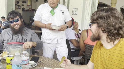 As our cruise ship approached the island, we spotted Pancho's right by the ocean. The restaurant looked serene and cultural, with a wooden front decorated with colorful paintings and plants. Palm trees swayed gently, adding to the relaxing vibe.