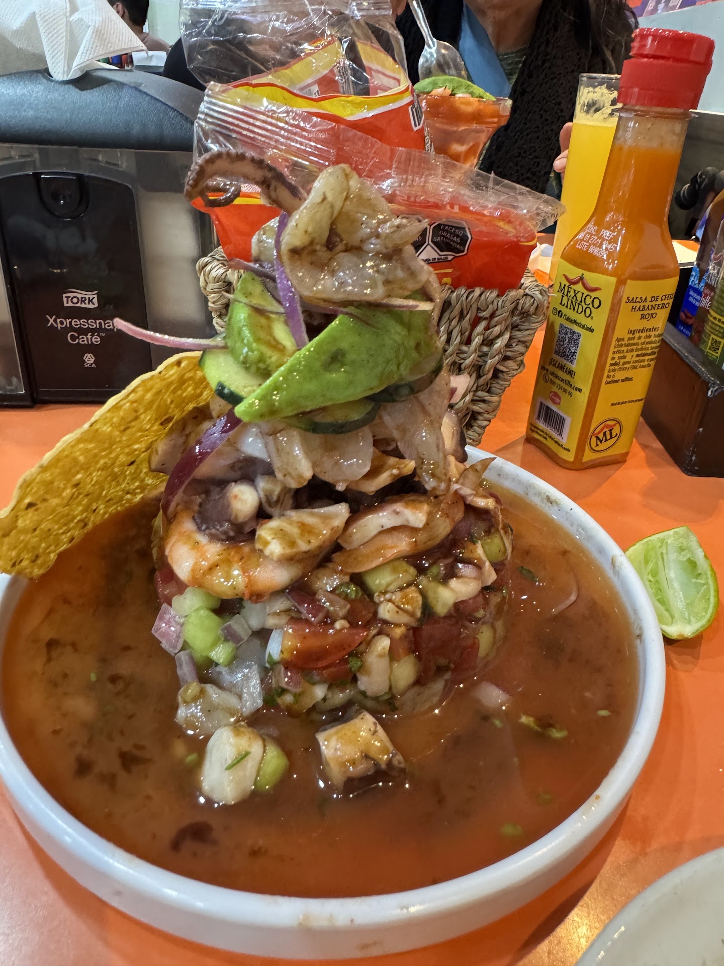 Read moreCasi nunca hago esto, pero este lugar fue muy decepcionante, para empezar el servicio fue malo, pedí una periquera y se les olvidó traerla, la tuve que volver a pedir después de unos 10 minutos o más que llegaron a pedir la orden. Toda la comida estuvo fea, salada, pedimos camarones a la diabla y no picaban además de estar super salados, como si la salsa ya era de tanto tiempo que con tantas hervidas se sala y pierde su sabor, tampoco picaba, se suponía que era a la "diabla". También pedí un caldo y estaba super salado, lo mismo, como si hubiera sido de días, ese si pedí que me lo cambiara y el mesero contestó sarcásticamente que ahorita pedía que le pusieran caldo sin sal, y así fue, supo a caldo rebajado con agua sin sabor. Una empanada sabía a cebolla. Lo único bueno fue el cóctel de camarón. En fin, los precios super caro, la comida salada, de días, y el servicio pésimo. No vayan a menos que quieran llevarse...