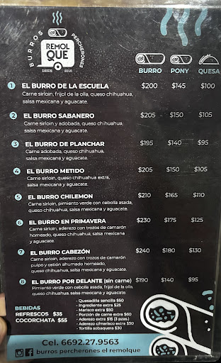 Pudiera decirse que El Remolque es otro lugar más que se une a la invasión de burros estilo Sonora. No es así. Este lugar brilla con luz propia. Además de un excelente servicio, su producto no queda a deber. Hay un tamaño ideal para tu apetito (burro, pony, y quesadilla), acompañados de exquisitos aderezos a tu elección. He probado el Sabanero, el De la escuela, el Burro metido; y aunque todos cumplen, me quedo con el Chilemón, con un toque de pimiento verde que le da un sabor especial. Totalmente...