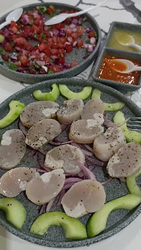 I'm new favorite place to eat seafood...my girlfriend enjoyed the callo de hacha...I ordered the molcajete with cold shrimp and octopus...the salsa with chiltepin was very good...server was very attentive didn't have to ask for pacifico...great air conditioning unlike most places here in Mazatlan....returned and my girlfriend recommends the shrimp meatball soup!