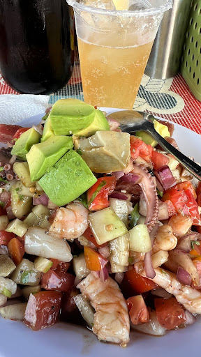 Read moreVisitamos estos mariscos por un video que vimos en redes, nos arriesgamos y valió totalmente la pena, eso sí por su popularidad estan llenos en fin de semana hay que esperar así que te recomiendo ir con tiempo. Nosotros pedimos dos ceviches medianos y una camarones para picar, los ceviches súper bien servidos y con la cantidad exacta de verdura, pedimos su famosa salsita de chiltepin y estaba espectacular para remojar esos camarones cocidos, que por cierto nos sorprendieron porque estaban en su punto de cocción. Acompaña estos manjares con unas suaves que...