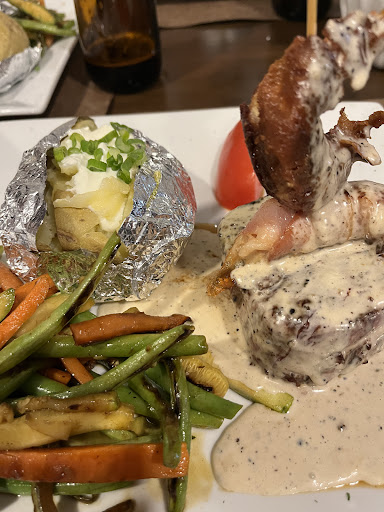 I highly recommend the Filet Mignon and Prawns at this hidden gem of a restaurant. The filet mignon was easily the best I’ve had in years—perfectly cooked, tender, and paired with a rich, flavorful sauce that elevated the dish. Accompanying the steak were two beautifully cooked prawns, adding a touch of elegance to the plate. The perfectly prepared vegetables and baked potato rounded out the meal with balanced, complementary flavors.