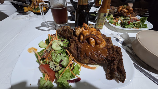 We showed up early on Diá de la Marina on a visit to Topolobampo. Atop a hill overlooking the water and the town, Stanley's provides a fantastic environment and food experience. With outdoor and indoor seating, great service, and exceptional food, this place is a must try if you are in the area. We had Chicharrón de pulpo "Topolobampo" and the Pargo relleno "Don Ruben", which was packed with shrimp, cheese, and octopus. The service was super good and even though our food was very technical, it didn't take too long. They offer venue options for parties, and that experience looks to be one we will be taking...