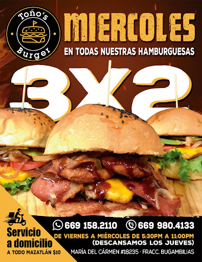 Como siempre, hamburguesas bien ricas y llanadoras, muy monchosas y a buen precio, cada que voy a mazatlan hago una parada obligatoria por aquí!! El mejor restaurantes de Hamburguesas en Mazatlán, con servicio a domicilio a todo Mazatlán. Hamburguesas de calidad, ricas y muy,...