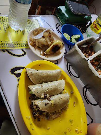 muy buena atencion, bastantes clientes y eso hace que se tarde un poco la orden ,pero si te fijas en la persona que prepara los tacos y ves su agilidad y sentido de urgencia te daras cuenta que les importa mucho el cliente , esto se confirma cuando te llega el pedido a la mesa, un taco con tortilla de harina un poco mas grande de lo normal, con muy buena raciin de carne asada, muchísimo queso, col , un enorme chile verde relleno de queso, y en la mesa una pequeña barra de accesorios para adornarlo : aguacate con tomate, salsa bandera, salsa martajada (ingredientes asados y molidos en molcajete),limones,y un platito con cebolla caramelizada adornada con un chile guero asado, el sabor? una explosion de elementos en tu boca, el taco es tan grande que cuesta trabajo tomarlo, si lo acompañas con una horchata, muy natural, con el sabor del arroz molido y su correspondiente textura o una deliciosa agua de guanabana, endulzada al punto, el platillo queda completo , soy tragon y con un taco fue suficiente , como traté de explicarlo se daran cuenta que esta muy recomendable.. pueden pedir un sope también, ese ya les tocara reseñarlo a...