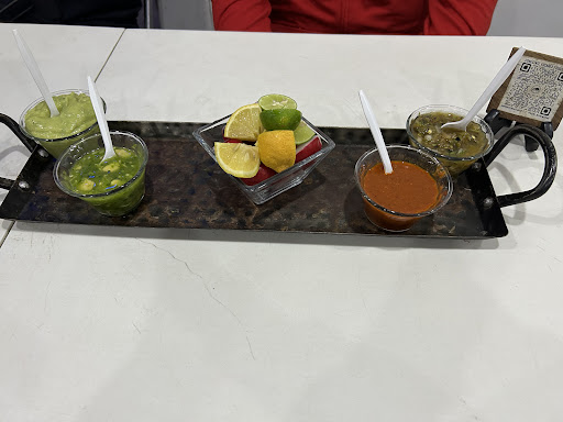 Read moreTenía muchas expectativas sobre este lugar pero la verdad que no las cumplió, personalmente hablando no fue lo que yo esperaba, las tortillas de harina que utilizaron en mis tacos si estaba muy buenas al igual que el queso pero los pedí de Arrachera y la carne estaba muy seca, demasiado, la la barra de salsas ofrece tres diferentes estilos y están sabrosas pero la carne...