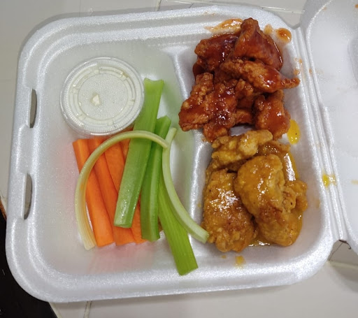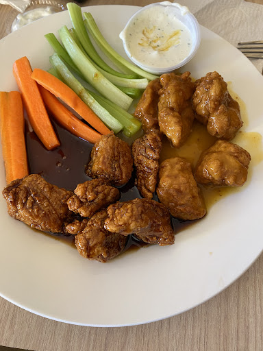 Fui con un grupo del trabajo (alrededor de 8 personas) y éramos los únicos en el restaurante a la hora de la comida y aún así se tomó algo de tiempo en tomar nuestras órdenes: La comida está ok, aunque los boneless tenían una textura similar a los congelados que puedes conseguir en walmart o Costco. He probado peores pero también hay mejores opciones por el rango de precio. El servicio fue lento. Fue casi 1 hora desde la toma de orden hasta que nos trajeron los platillos y de pilón tardaron 1 hora en decirle a un compañero que no tenían disponible el platillo que él había ordenado. Para crédito del restaurante, le dieron 1/4 de costillas gratis como compensación; un poco tarde, pero fue un gesto de amabilidad apreciable. No volvería al restaurante, pero tal vez el servicio es diferente durante la noche o a domicilio, cuando hay más movimiento...