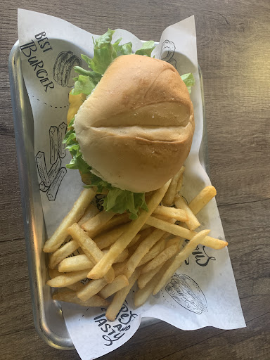 Sencillo lugar con mobiliario algo vetusto y maltratados, sus alimentos son buenos, me agradó en que tienen diferentes opciones en hamburguesas como panes, carnes, papas. Su agua de limón es sabrosa, todo lo preparan al momento. Mi sugerencia es que ocasionalmente abran ambas puertas y ventilen un poco el lugar pues huele a comida bastante y no es muy agradable. Su personal es muy amable y sus precios accesibles. No me gusto mucho las charolas en donde te sirven me dio la impresion de charolas de instrumentos medicos o platos para mascotas, tienen amplio estacionamiento y baños muy limpios. Es...