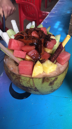 I had the coconut with fresh fruit which was fine but you get the water inside a plastic bag.. its unnecessary and makes it look messy and unclean, all this plastic ends up by the beach that is just a few meters away along with all the additional waste they create,...