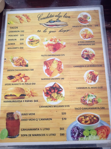 Para mi gusto tiene un buen servicio pero un poco tardado a pesar de que había poca gente en el local... El lugar está amplio.. está climatizado... Los baños están limpios y en buen estado ... Sobre la comida pedí unos ostiones y almeja china y venían calientes debido a eso les dio un mal sabor... Se pidió también unos camarones a la William y estaban ricos sobre todo el arroz qué le ponen como complemento .. las porciones son pequeñas lo que se adecua al precio económico .. y faltaban algunas opciones del menú para ser tan temprano .. buen lugar pero...