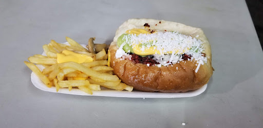 Read moreSimplemente los mejores hot dogs de Hermosillo, aderezados con ...lo que se te ocurra yo le pongo: cebolla frita, chorizo, aguacate, rajas con crema y elote, champiñones, pepino picado..ya no le cabe más? Abre un poco el pan para que le entre: queso amarillo derretido, queso blanco, jalapeño pa' que Pique,... pickles, catsup y mostaza pa que combinen los colores. Obviamente acompañados de sus papas fritas.. y les ponemos algo encima? Claro!!!: la mitad de las papas con catsup y la otra mitad con queso amarillo... Las mías con aguacate......