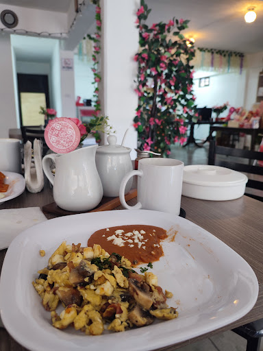 Agradable lugar que desde que entras te recibe un breve olor a rosas. El ambiente está con decoración de flores y despierta tu sentido de la vista y olfato. Súper amable la atención, me dieron galletitas en lo que veía el menú, ese me pareció un buen detalle. El horario abarca desde la mañana hasta la tarde noche. Buen lugar para platicar con amigos. Los alimentos tienen muy buen sabor, son muy detallistas en su decoración al servir. Solo creo que le falta más opciones al menú ya que los platillos que tienen van más como desayuno o almuerzo de temprano, y considerando su horario faltaría agregar platos para comida y cena. Otro punto a mejorar es que...