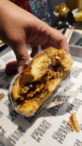 Nunca había comido en el lugar siempre pedía para llevar, esta cómodo tranquilo tienen el método de fast food que pides en barra y pagas y luego te lo llevan a tu lugar, para no es el tamaño Perfecto de una hamburguesa pero hay gente principalmente hombres que dicen que no los llena, las papas son la versión Premium de las de mcdonals están buenísimas.