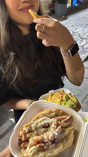 Read moreProbablemente son los mejores Hot-dogs de Hermosillo. Ademas de los clásicos dogos con queso Philadelphia, o tres quesos, o el chile dogo que puedes encontrar en cualquier carreta de Hermosillo, manejan el hot dog cuarto de libra, con salchicha kosher. Además de lo anterior, la extensa barra de complementos esta llena de delicias chiles caribe toreados, cebolla frita, diversos quesos amarillo derretido, champiñones al natural o adobados, pepino con crema y elote, en fin. Un paraíso para quien degusta una delicia como dogo de Hermosillo. Por supuesto que puede ir acompañado de papas fritas, normales o de...