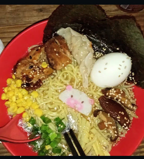 Read moreIba por el Ramen pero no como puerco. Y me comentaban qué tenían otras opciones además del Ramen. Pedi una sopa miso,ededames y otras bolitas de calamar ( no recuerdo el nombre) 1-duraron 1 hora para entregarme, pienso que nunca enviaron mi orden, me tube qué parar a comentarles 2- la sopa miso helada y muy mala 3- los ededames nunca me los llevaron ni mi bebida. Mejor me fui porque ya me daba pena volver a decirles algo. 4-las bolas de calamar Horribles