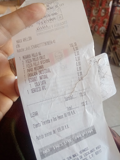 Read moreNO MERECEN NINGUNA ESTRELLA!! PÉSIMO SERVICIO…Fui la semana pasada y muy mal servicio, pedí receta secreta y crují… solo me dieron “receta secreta” pero empapado en aceite, tardaron 45 min en darnos nuestra orden para llevar Nos dieron nuestra orden incompleta Cuando le dijimos ala señorita que faltaban las ketiras, nos dijo que “no las había puesto porque no había” esperamos 20 min mas porque esperamos que salieran las ketiras. Cuando llegamos a nuestra casa a comer, algunas piezas tenían sangre por dentro, no estaban...