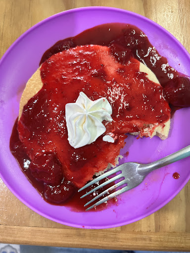 Estoy terminando de desayunar en este lugar, es la primera vez. Muy rico, el servicio muy rápido y amables. Me atendieron en cuanto llegué. Hasta el café está bueno. Hoy tienen una promoción y regalan un hotcake con cada plato. No podría pedir más, anexo foto del hotcake ya a medias.