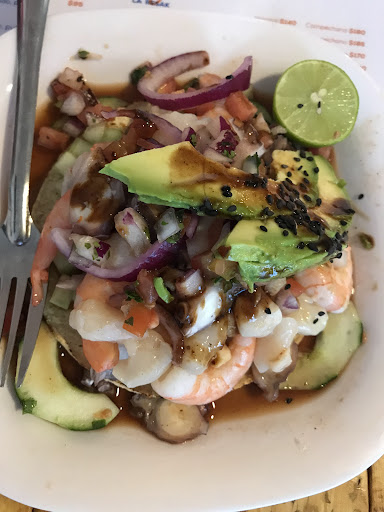 One of our new favorite places for seafood. Met the owners and they take pride in their place. Clean, shrimp was excellent, and the Campechana was awesome according to my wife, great service, eating out anywhere is expensive so the best you can ask for is the best quality and taste of the food and there are few places better for under 15USD/280pesos a person for quality seafood. Small and cozy but if they keep up this quality, they should be able to move to a larger place...