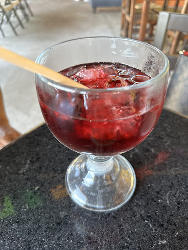We both ordered Micheladas. Hers had Dos Equis beer and mine Tecate Rojo (as opposed to the Blue, which is Tecate light and has a watered-down taste for me). These Micheladas featured a goblet rimmed with salt and a straw surrounded by what appeared to be dried Chamoy sauce, see attached photo. This dried Chamoy looked like it had Tajin spices embedded in it. The goblet was full of hot sauce, ice, and beer. A sign by the beer refrigerator stated that their ice came from purified water. They brought out the 3/4 full bottles of beer with the goblet. They use a lot of hot sauce in the Micheladas. I liked this because they had a nice kick. As you drink the Michelada down, you add more beer and mix it with the straw. The dried mixture on the straw slowly dissolves into the drink.
