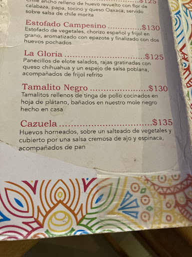 Read moreLa comida en sabor estaba rica, pero el servicio mesero en conjunto con cocina deja algo que desear: Pedí un té Chai, lo trajeron tibio más bien que caliente. Al traer la orden, olvidaron traer 2 jugos verdes. Pedí una cazuela, la cual en el menú no indicaba que llevaba tocino, y en el platillo si traía. Una persona acompañante pidió el platillo Las Violetas y al comerlo encontró un alambre con el que amarran el pan dentro del guiso. Se le notificó al mesero y solo se llevo el alambre, no pidieron disculpas y encima cobraron el platillo cuando pedimos la cuenta.