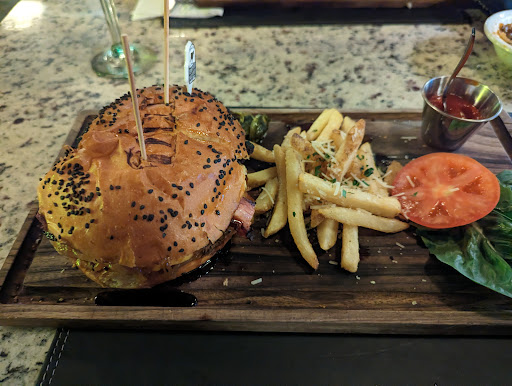 La comida estuvo excelente, ordenamos una hamburguesa de dry aged beef con tocino, muy rica. En lo personal no me encantan tan manchosas, pero de sabor excelente, y las papas riquísimas y crujientes. El siguiente plato fue un filete mignon de mantequilla de blue cheese y estaba estúpidamente deliciosa. Si te gusta el blue cheese, este es tu corte, tenía un sabor intenso, la carne estaba tierna, en sí fue la estrella de la noche.