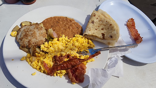 Updated review.....11/08/22 - Nov. 8th AVOID THIS PLACE. I haven't been in some months. Went there for breakfast and what should have been a $15.00 dollar breakfast turned out to be $34.00 dollars for three people. Only changes were toast (2 pieces) on one order instead of tortillas and my friend had two top shelf tequilas (Don Julio blanco) instead of well tequilas. I have no clue where the extra $18.00 dollars came from. Oh and the other two drinks have almost zero alcohol in them. My bloody mary tasted like garbage and my friends tequila sunrise had very little alcohol, my friend said it was also garbage. I live here in Penasco now and won't be going back. Lucky's needs to be changed to Extortion's. Old review below....... Mediocre. The $5.00 breakfast is worth the price...sometimes. I've eaten Lucky's for breakfast a few dozen times over the past 2 years when I visit R.P. Breakfast is the same 3 eggs any style...I get mine over hard. Beans, hashbrowns (usually cold and old), 2 strips of bacon and 2 sausage links. Plus a Bloody Mary. That's the catch, you order a drink - $5.00 and the breakfast is free. Most of the time everyone ends up ordering 2 drinks. I've only tried their bottomless all you can eat fish one time. NEVER AGAIN. The fish was so wafer thin and overcooked like jerky. Horrible. Like every place in R.P. it's hit and miss. The breakfast is only good for...