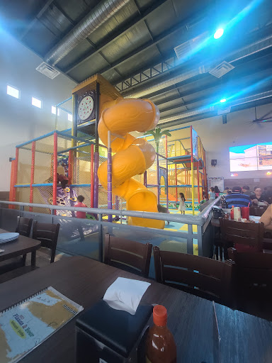Fuimos a celebrar el cumpleaños de mi hija, y llevamos algunos niños. Al momento de ir al área de juegos, me di cuenta de que estaba bastante lleno, pero parecía estar bien organizado en cuanto a la distribución de las mesas y el espacio en general. Sin embargo, lo que no me gustó fue que había muchos niños más grandes en el área de juegos. No sé cuál es el límite de edad o altura para estar en esa zona, pero me preocupaba que los niños más pequeños pudieran salir lastimados por los más grandes. Algunos de estos niños más grandes ni siquiera estaban jugando, solo estaban ahí platicando y ocupando espacio, lo que hacía difícil para los más pequeños disfrutar del juego con libertad. Otra cosa que noté fue la salida de emergencia. Había una mesa bloqueando el acceso, y me preocupaba pensar qué pasaría si hubiera una emergencia. Además, la puerta de emergencia me pareció un poco pequeña para la cantidad de gente que estaba en ese área, y con una mesa en el camino sería aún más complicado.Aparte de eso, todo estuvo muy bien. La comida fue buena, y la pizza deliciosa. Solo una observación: los platos donde se sirve las entradas bastante pesados, y me parece que eso hace más difícil el trabajo de las meseras al cargar los platos con comida. En general, es un lugar agradable para una reunión familiar con niños. La decoración es bonita y el ambiente...