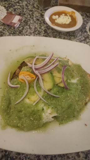 Las enchiladas vienen tres y son mini tortillas rellenas y bañadas en una salsa. El sabor, bueno a secas, mas dista mucho de ser cocina de autor.