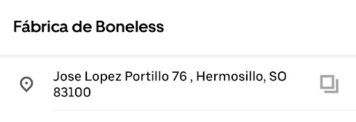 Aparecen como Fábrica de Boneless en Uber Eats, del pedido no era lo que solicité y las papas fatales. Con todo respeto deberían de publicarse como son y mejorar la atención y calidad
