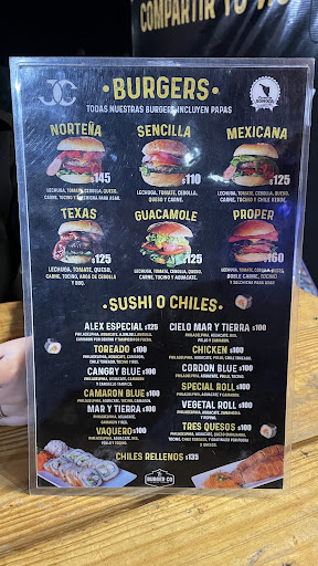 Read moreLa semana pasada hice mi primer en este restaurante y lamentablemente fue desagradable, la hamburguesa estaba bien en cuanto al pan verduras y la porción, pero la carne estaba que me da asco de acordarme, muy dura parecía carne de rabo con pellejo, del sabor ni me acuerdo no me la pude terminar, el sushi estaba bueno y el boneles me pareció una...