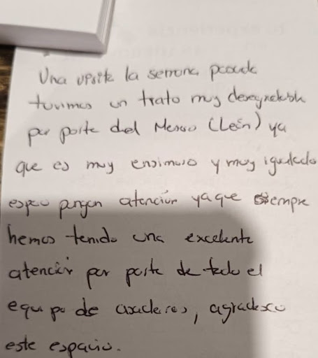 Read moreQueja formal sobre la conducta y capacidad del Capitán Damián. Estimados señores: Me dirijo a ustedes para expresar mi profunda molestia y desacuerdo con el trato recibido por parte del Capitán Damián el día de hoy durante mi visita a su establecimiento. Mientras me encontraba en mi mesa, el Capitán Damián se acercó a mí de manera inapropiada para solicitarme que dejara una queja por escrito en mi ticket de consumo en contra del mesero León. Cabe señalar que el mesero León no nos atendió de manera excelente y no teníamos ninguna queja o inconformidad con su servicio. Considero que la acción del Capitán Damián es completamente inaceptable y carece de profesionalismo. Como figura de autoridad dentro de su equipo, su deber es gestionar situaciones internas de manera discreta y adecuada, sin involucrar a los clientes en conflictos o evaluaciones de desempeño de sus empleados. Su solicitud me puso en una posición incómoda y me hizo sentir utilizada para un fin ajeno a mi experiencia como comensal. Esta situación no solo me generó una gran molestia y una mala impresión del establecimiento, sino que también me lleva a cuestionar la capacidad del Capitán Damián para ocupar un cargo de liderazgo. Un oficial de su rango debe demostrar juicio, discreción y la habilidad para resolver problemas internos sin comprometer la comodidad y la experiencia de los clientes. Su comportamiento refleja una falta de criterio y liderazgo. Espero que tomen esta queja con la seriedad que amerita y tomen las medidas correctivas necesarias para evitar que situaciones como esta se repitan. Mi intención es que su personal, especialmente aquellos en posiciones de autoridad, demuestren un alto nivel de profesionalismo y respeto hacia los clientes. Agradezco de antemano su atención a...