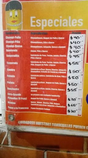 A mí me encantan sus banderillas, en especial la de queso dulce, vivo en Guadalajara y cuando venimos a mi esposa y a mi nos encantan, pero lastima que las que atienden son media nefastas, prefieren no vender a tener que por ejemplo ir por una lechera para mí paleta de queso dulce a la tienda que tienen enfrente y sus letreros que ponen super de mal gustó, espero que eso no les haga perder clientes por qué de verdad...