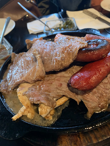 Read moreEl día ayer acudí con mi familia a comer, al entrar al restaurante me dio la impresión de que era un buen lugar y que ofrecían un buen servicio. Muy atentos los meseros y el capitán, hasta ahí todo bien. La gran decepción fue cuando nos llevaron los alimentos, prometen diferentes tipos de cortes de carne y solo eran trozos de pollo y bistec, con poca chistorra y chorizo argentino. Lo peor de todo esto, era que todos esos alimentos estaban baños en aceite, lo que provocaba que la carne estuviera muy dura y chiclosa (y se que cuando está chiclosa es porque la congelan, la preparan y si no se consume se vuelve a congelar) El trozo de pollo que yo consumí, estaba tan grasoso que al morder salió el chisguete de aceite. Me sorprendió que las bebidas eran bastante caras, más que el propio bufete, al final pagamos más de bebidas, que de comida. Te limitan a una sola empanada por persona cuando en otros lugares es libre. La barra de ensaladas muy pobre, las zanahorias estaban amargas, la jícama estaba aguada, la barra de ensalada caliente tenía solo espagueti y era un espagueti muy simple, así como salchichas con cebolla, frías. Lo que más me molestó, es que las planchas de comida al centro, no llevaban cubiertos para servirse, teníamos que usar los propios, simplemente por higiene no haces eso. Pésimo lugar. No...