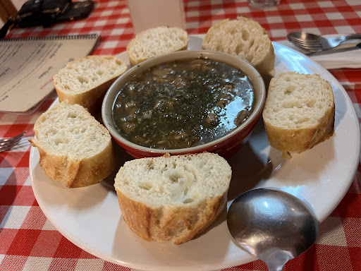 Don’t miss out on this amazing French restaurant! We enjoyed dining here so much that we returned to eat the next day as well. On our first visit, we enjoyed the mushroom appetizer with fresh bread. Outstanding! Then we each had a baguette, Italian and French. Wonderful, wonderful! The desserts looked so good that we ordered them to go, chocolate mousse and tarte tatin aux poires (pear tart). The tart was like taking a bite of Christmas, warm, delectable spices. The next day we returned to have their French onion soup served with a lovely, wheat baguette and potato soup. Again, a...