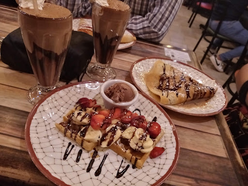 Fui con 3 amig@s y mi novio, cuando llegamos estaba lleno (no había mesas) y la chica que está en la entrada nos puso en una "lista de espera", tuvimos suerte porque no esperamos mucho ⏰⏳. Es un lugar cómodo, hay sillas y silloncitos para sentarte. El ambiente es tranquilo, fuimos en sábado por la noche y solo era la música del lugar pero tiene un volumen adecuando para poder escucharla y platicar con tus acompañantes 😉🎶🎶. La atención, por el personal, es buena. Solo lo necesario, amable, rápido (tampoco es flash, para no exagerar jaja) y creo es eficaz. MENI CON QR. Baño mixto, pequeño pero no desagradable. En la foto podrás ver; WAFFLE BOSTON, CREPA CHERRY Y 2 CAPUCCINOS FRIOS DE Moka 🤤, todo SUPER RICO, bien servido, porción perfecta, diseño/emplatado muy bonito 💖 Yo, en lo personal, recomiendo el lugar, piensi que fue una gran opción ir ahí y creo que por la calidad, ahora es uno de mis sitios favoritos y claro que...