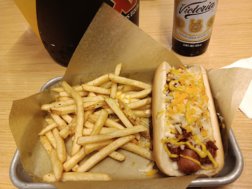 Entré gracias a su promo de mojitos a $50 y después de cierta hora, whisky, ron , tequila o vodka en cuba a $30. Es un restaurante bar, creo yo, como para ir a ver algún partido o platicar con amigos, con tu date, familia, etc. Y está muy tranquilo el ambiente con música muy amena y a bajo volumen para que puedas platicar a gusto. El lugar muy bien ambientado con tema deportivo y con mucho estilo americano. Los mojitos de $50 la verdad muy ricos, 10/10 pero lo que yo considero un poco caro son sus alimentos y lo digo sobre todo por las porciones. Eso sí, a mí no me pidieron consumir alimentos para poder beber pero desde que entras huele a salsa de alitas y se te antoja por lo menos para picar algo. El lugar está limpio, baños limpios, buen servicio, buena atención, espacio amplio y acogedor. Puedes estar en el área "abierta" de la plaza o dentro del restaurante.
